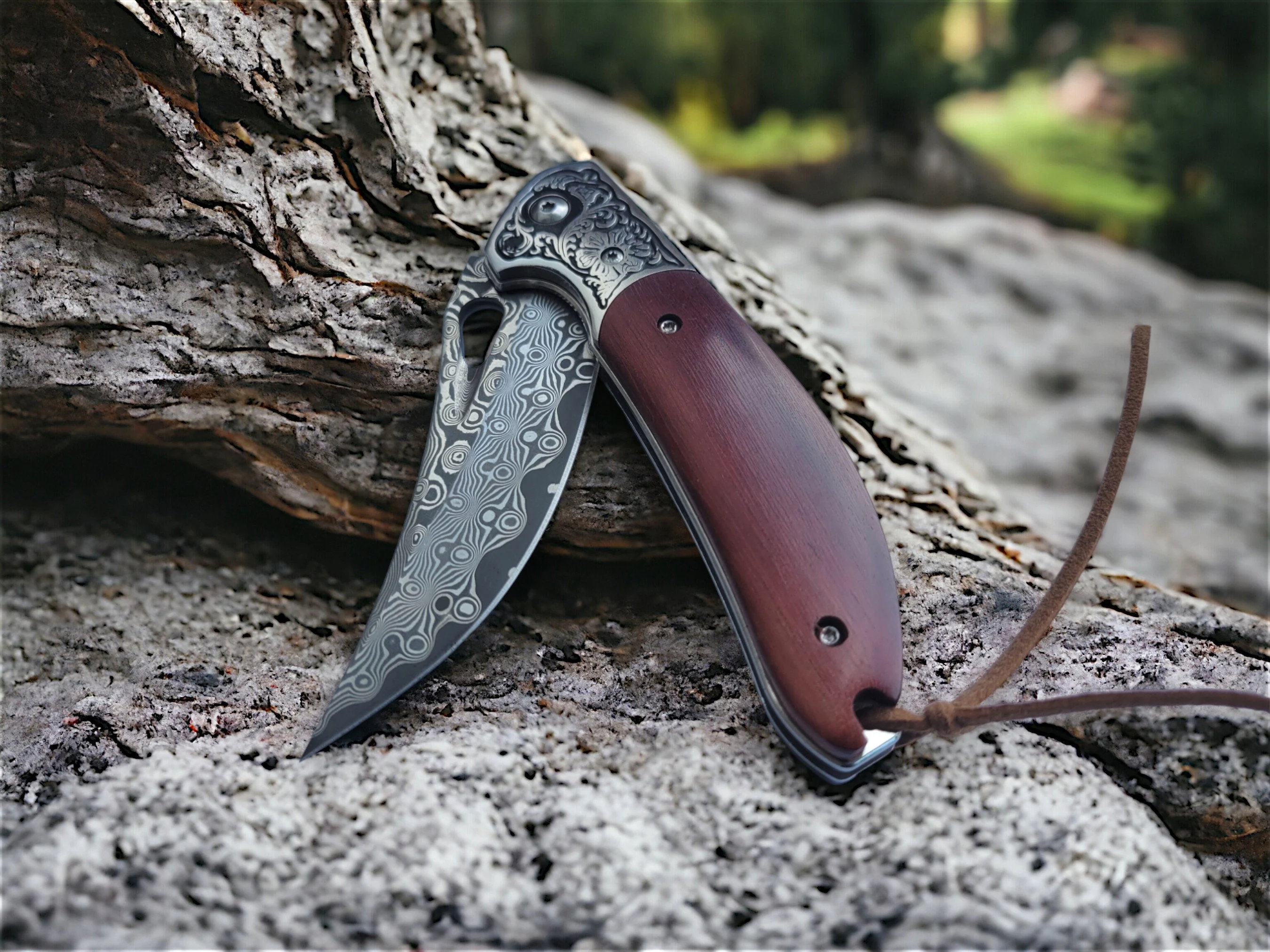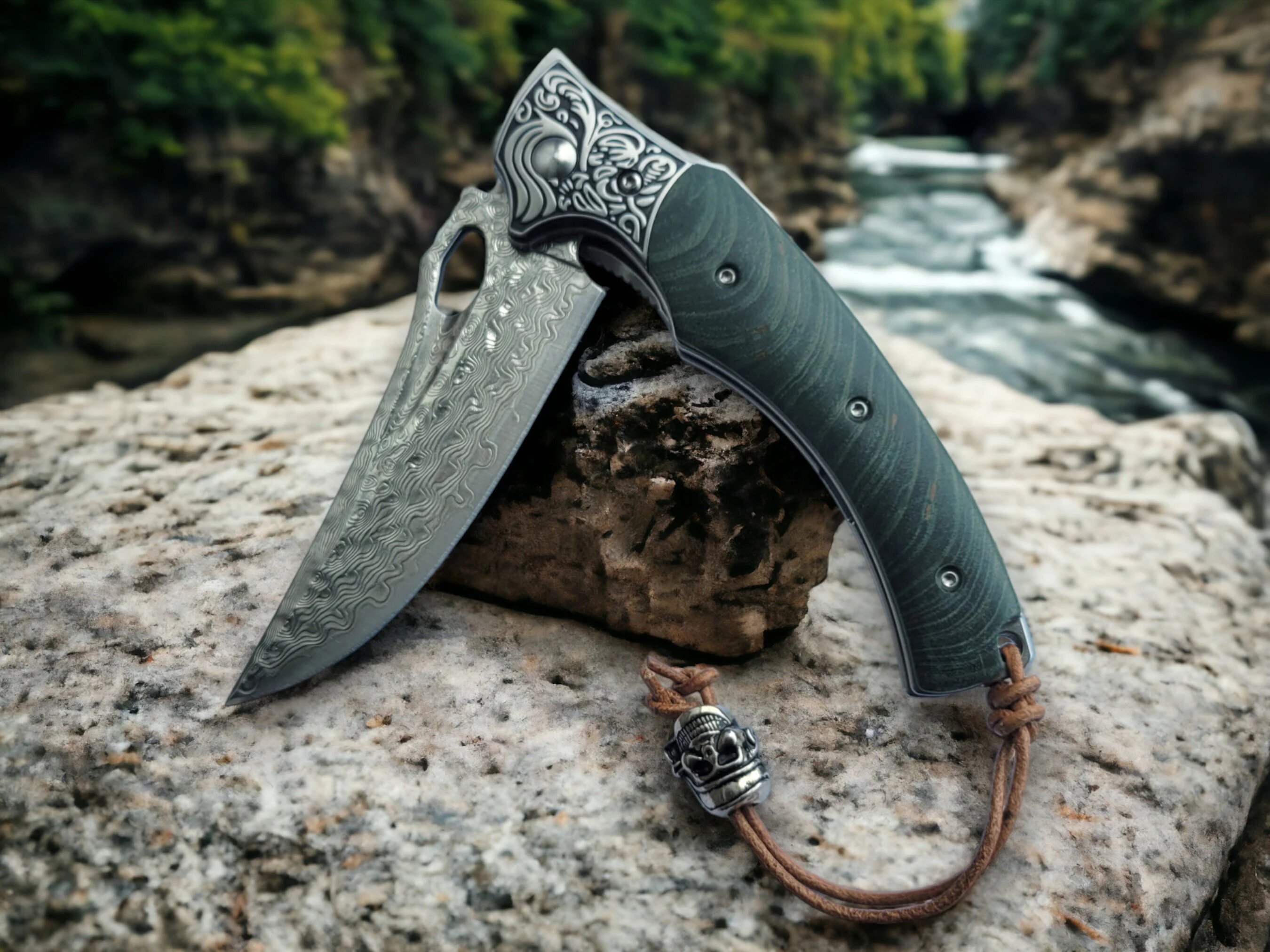 VG10 Engraved Damascus Steel Folding Pocket Knife