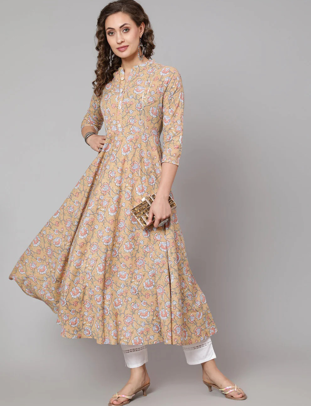 Floral Printed Mandarin Anarkali Kurta