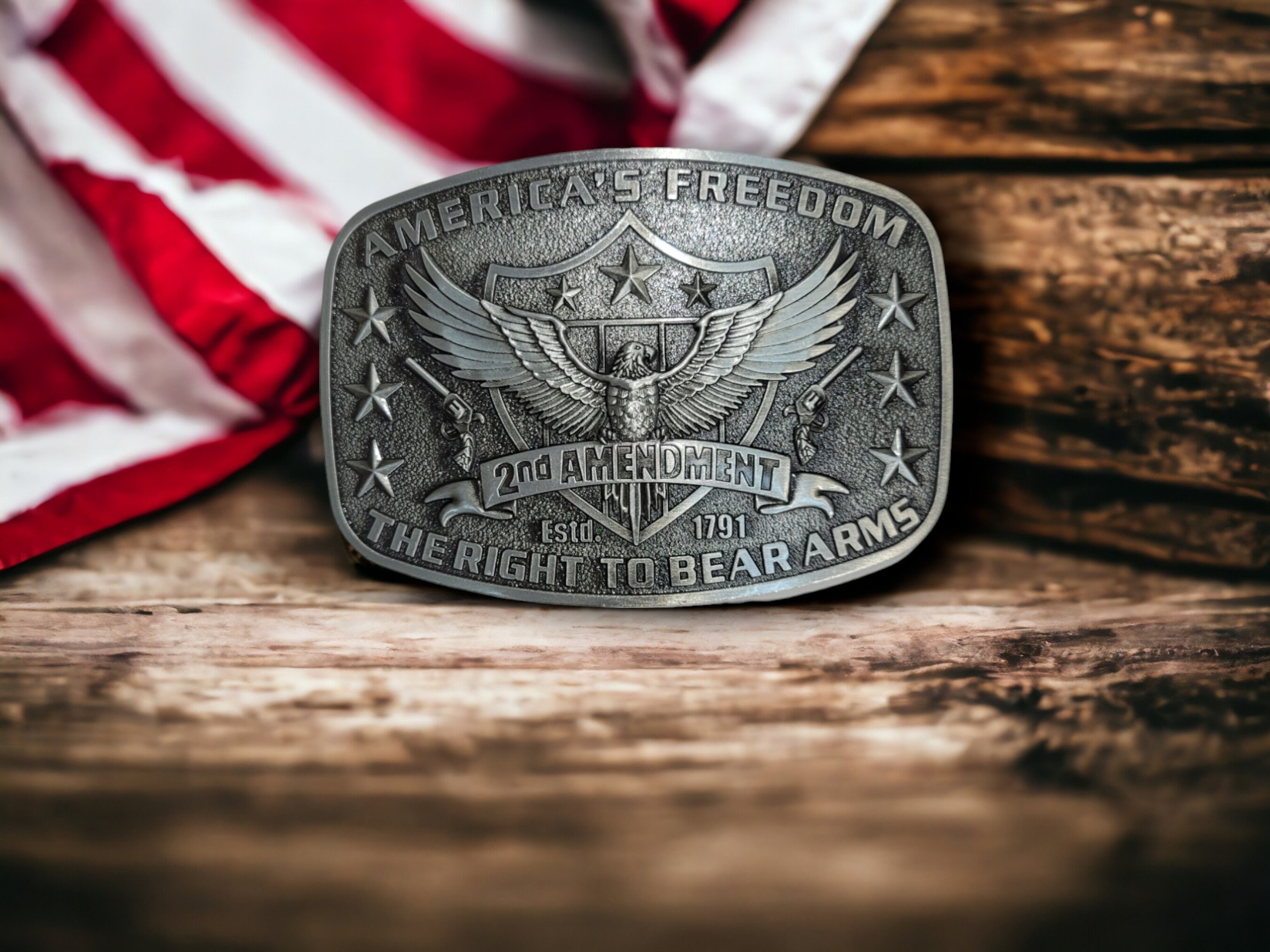 American Freedom 2nd Amendment Silver Finish Belt Buckle