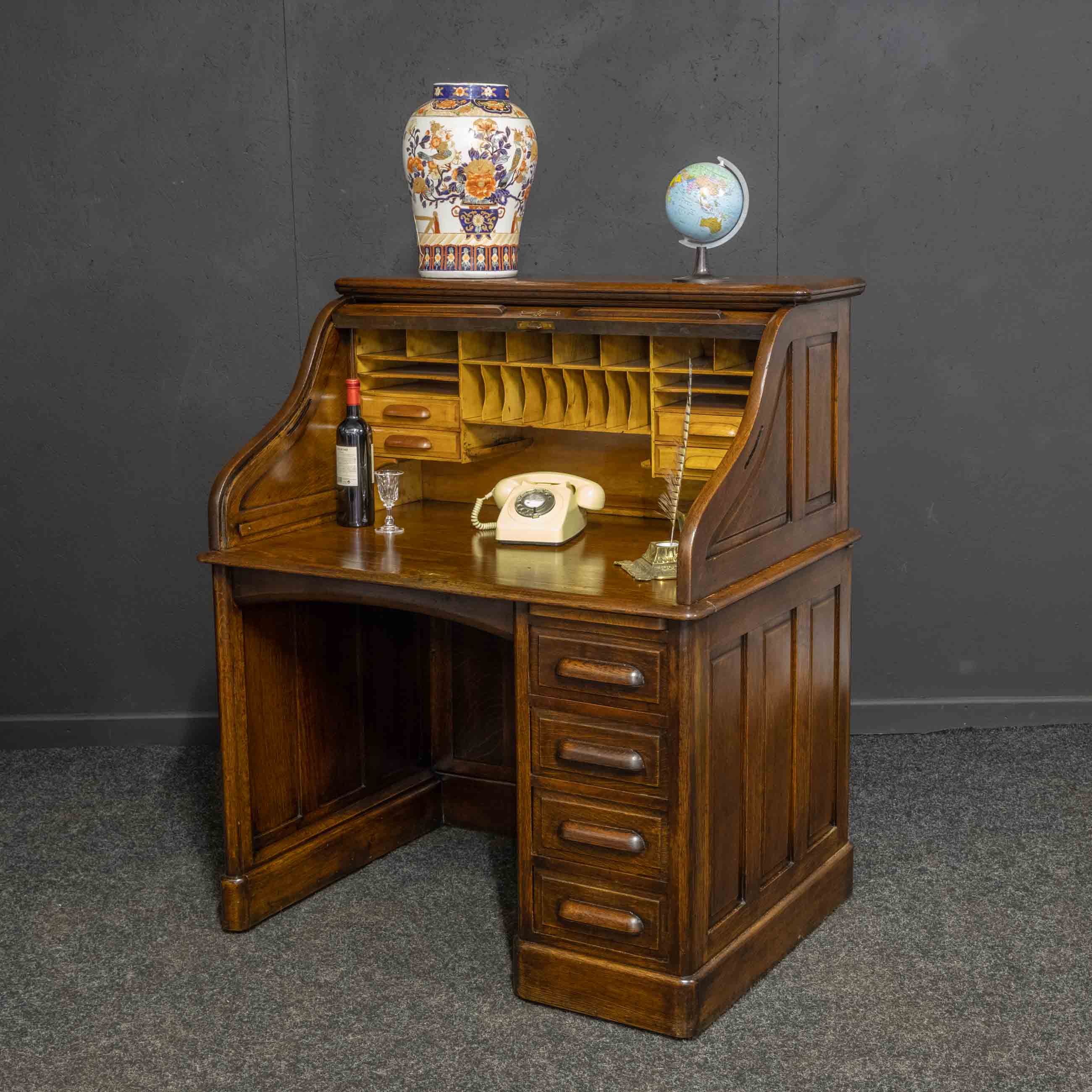 Edwardian Oak Roll Top Desk