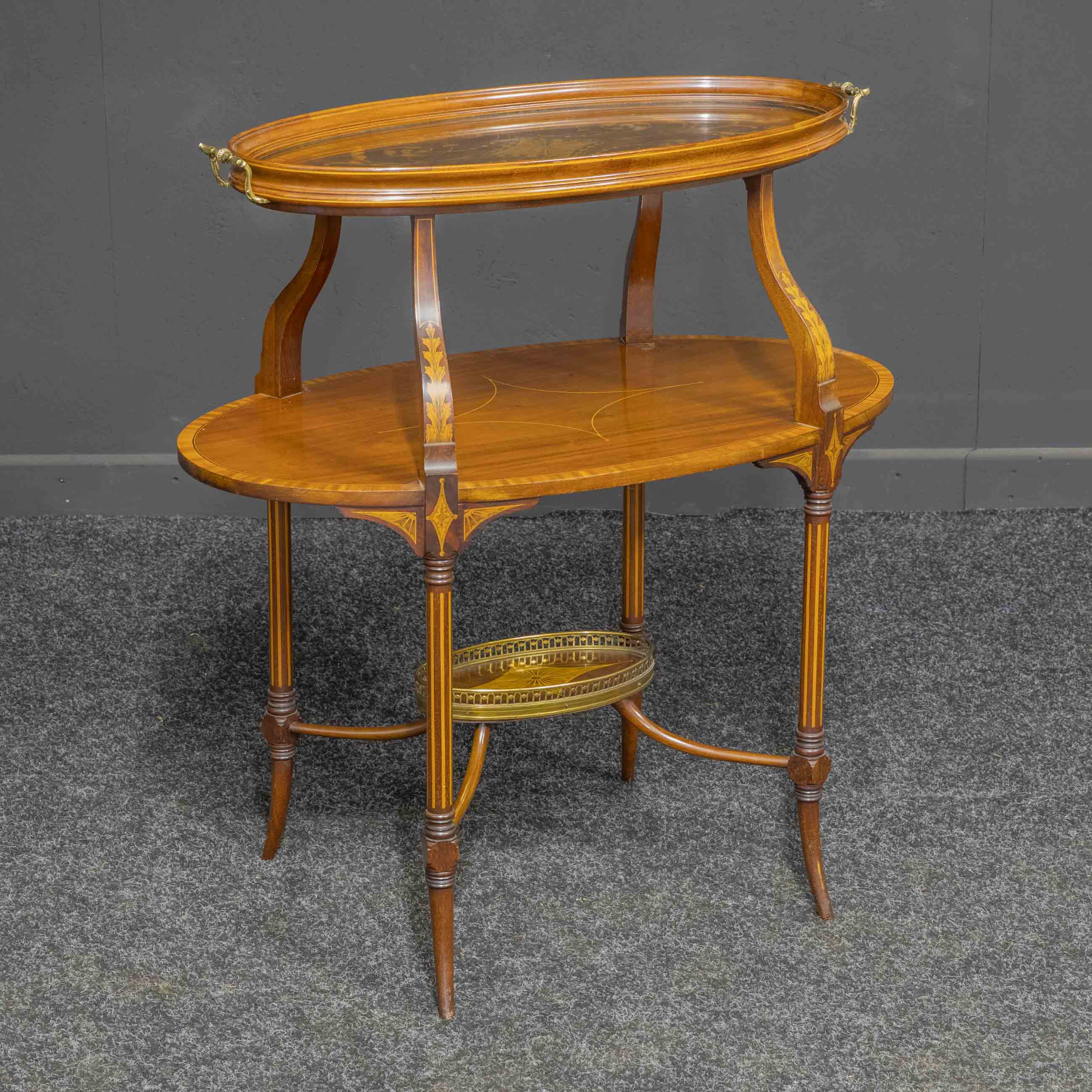 Edwardian Inlaid Mahogany Etagere with Glass Tray Top