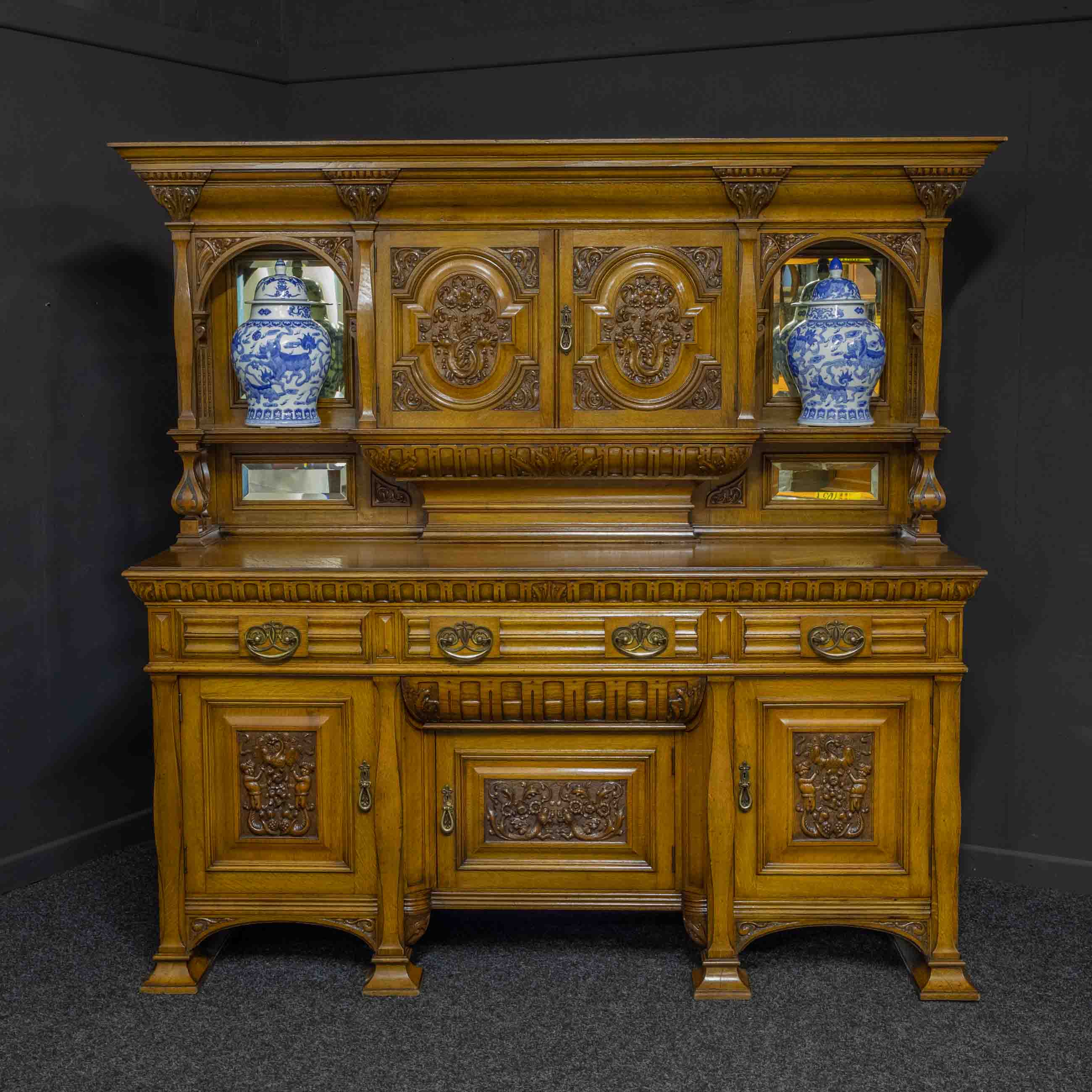 Edwardian Oak Sideboard by J. Cambell & Co Cabinet Makers Glasgow