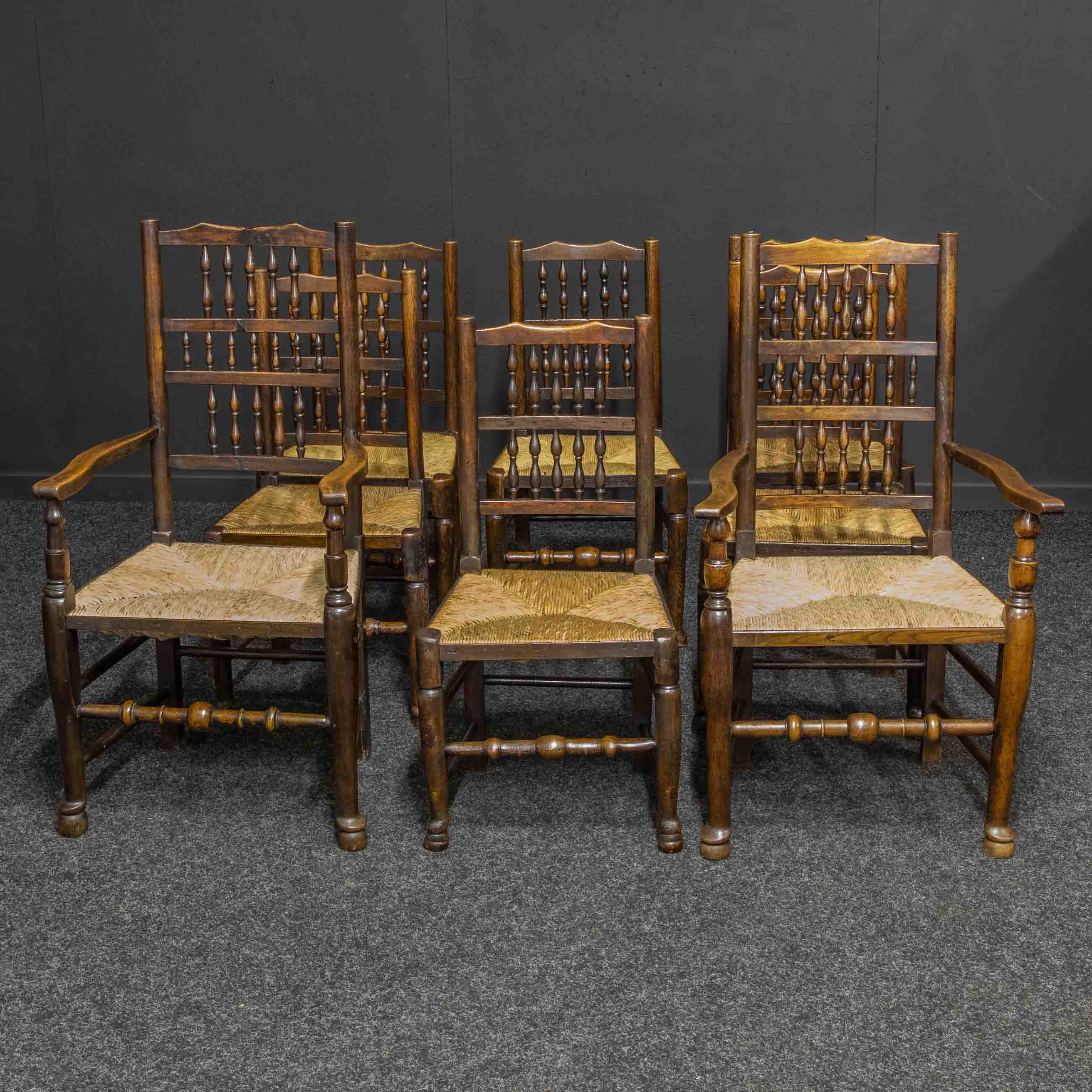 Set of Eight Georgian Lancashire Spindleback Chairs