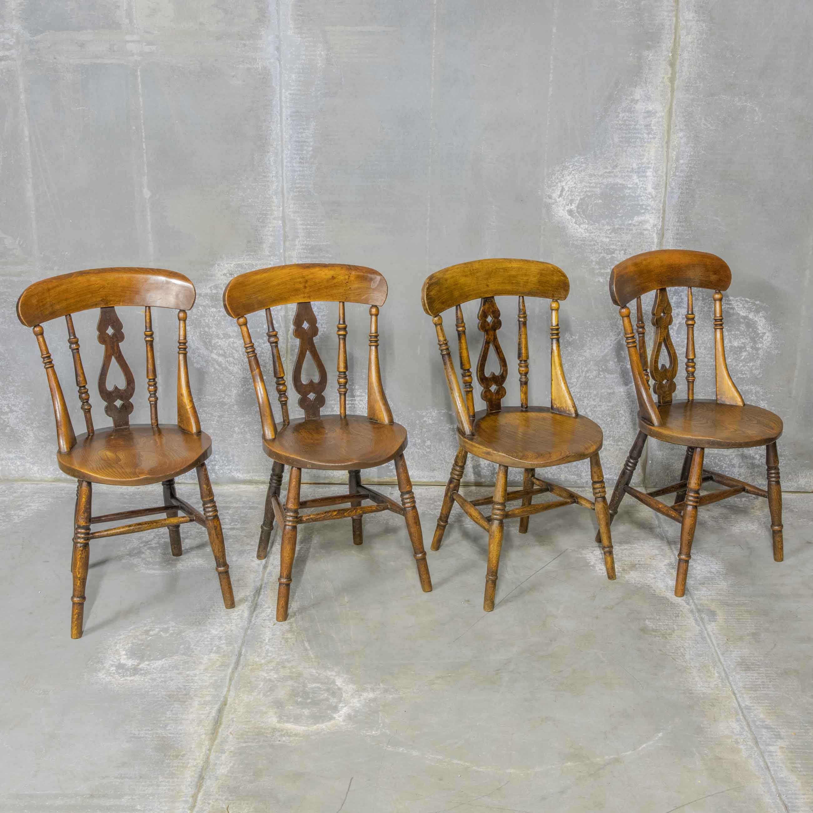 Set of Four Victorian Elm and Beech Kitchen Chairs